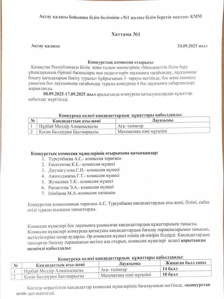 Ақтау қаласы бойынша білім бөлімінің "№1 жалпы білім беретін мектеп" КММ